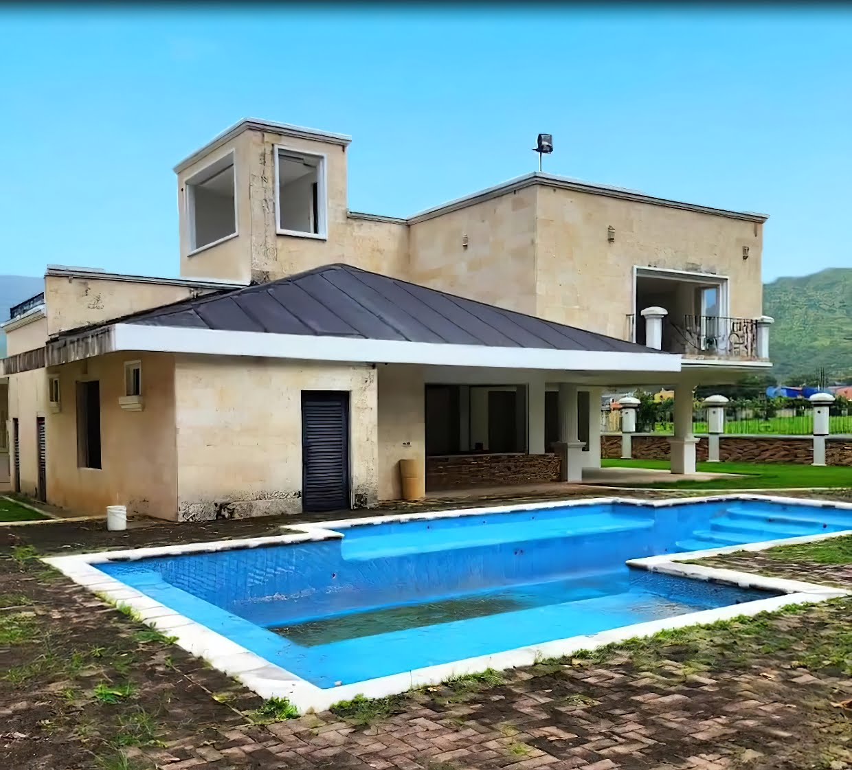 🔹Espectacular patio con piscina grande con ducha y baño, y áreas extensas de jardines, tiene toda la ducteria de aire y techos de yesos decorados en toda la casa, fachada toda revestida en mármol, sistema de riego en todos los jardines, piscina con sus bombas y toda la parte electrica lista, tanque de agua de 40.000 lts para uso interno de casa, y 30.000 lts solo para riego, totalmente cableada, y 3 cajas de brake con todos sus braker, totalmente revestida el cerco perimetral de tablilla colombiana con rejas en hierro forjado, es decir mantenimiento 0 en exteriores, una quinta única en toda San diego.