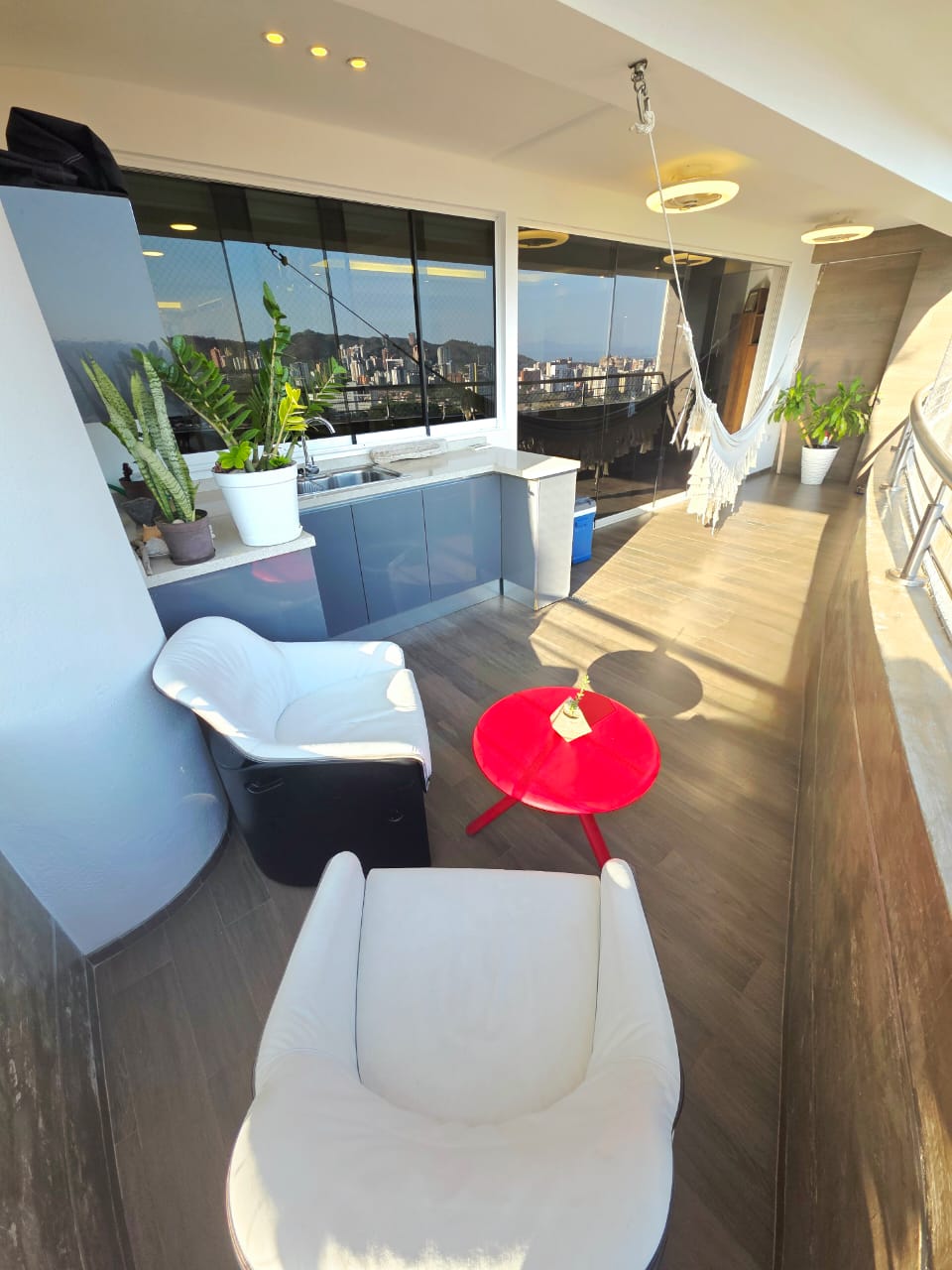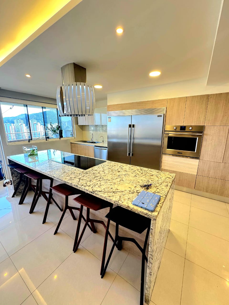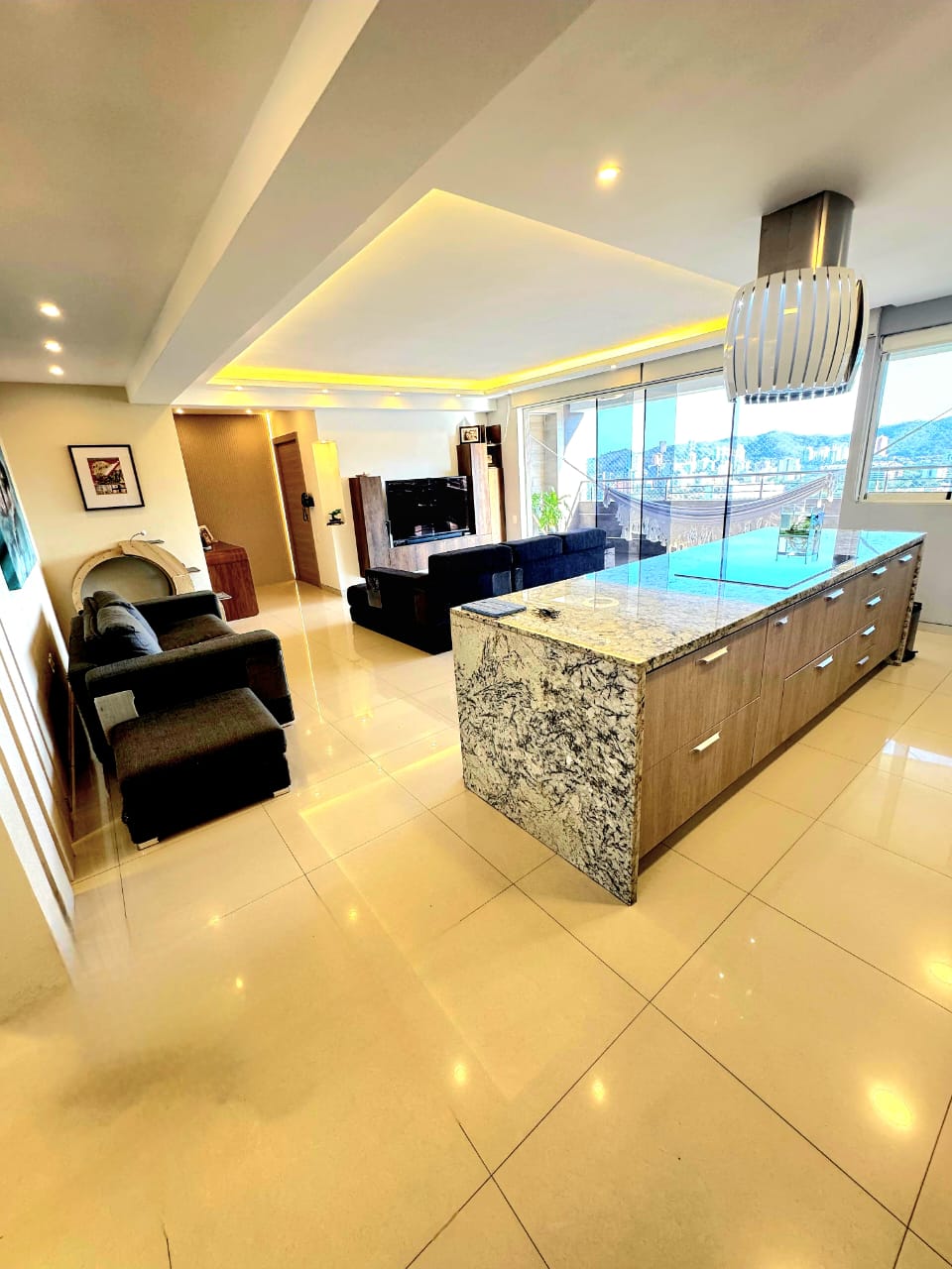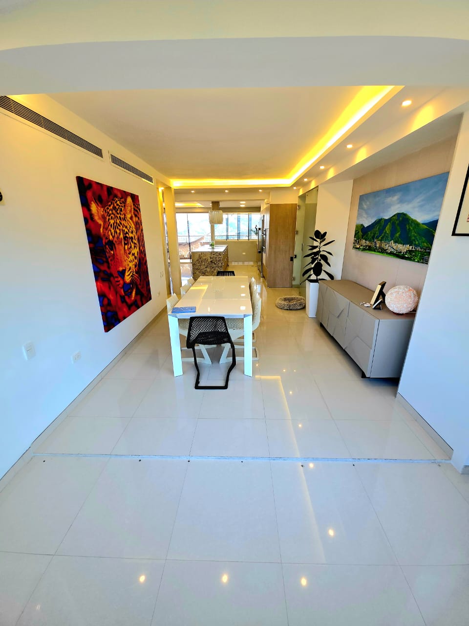 🔹️ Sala Grande con salida directa a terraza con vistas espectaculares a toda Valencia, hasta el Lago de Valencia. Baño de visita, Comedor independiente, bella Cocina Empotrada equipada. Lavandero independiente equipado, con Habitación de servicio con baño.