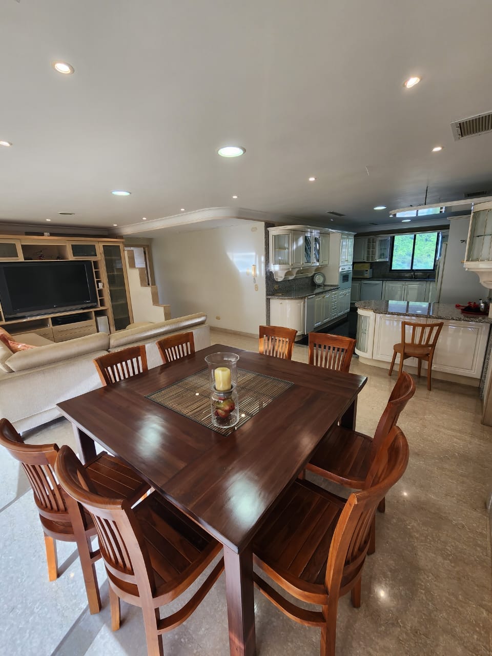 🔹 Hall de Entrada grande, baño de Visita, Salón comedor con Terraza grandisima y espectaculares vistas, integrada a Cocina Italiana Grande, equipada con todos los artefactos importados, Cava Cuarto de 5 Mts , toda internamente de Acero Inoxidable. Lavandero grande independiente equipado con muebles , lavadora y secadora, Habitación de servicio con baño.