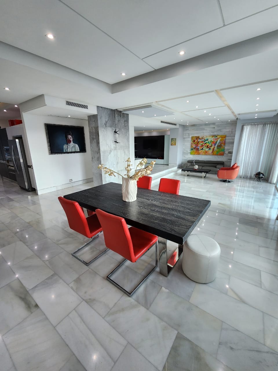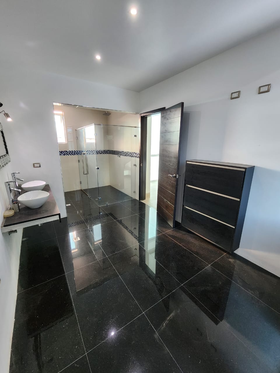 🔹Pisos en Mármol Carrara Blanco en Sala comedor, estar, Porcelanato Italiano en habitaciones, y Mármol Negro en Baño Principal, todos los demas baños con porcelanato italiano.