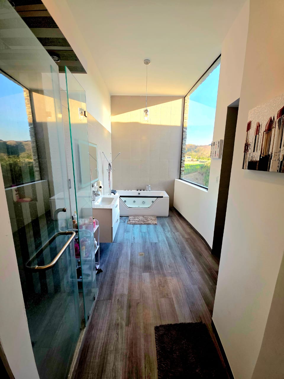 🔹️ Segundo piso, Estar Intimo, 3 habitaciones cada una con baño privado, la Habitación principal grande con Vestier del tamaño de una habitacion, con salida a terraza, otra Habitación auxiliar con Sala de Baño grande con Jacuzzi con espectacular vista, vestier y estudio privado o puede convertirse en vestier adicional y Terraza grande con espectaculares vistas al valle y montañas, la otra habitacion auxiliar con baño privado y vestier.