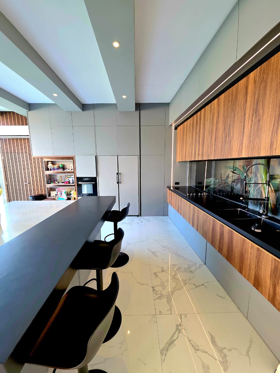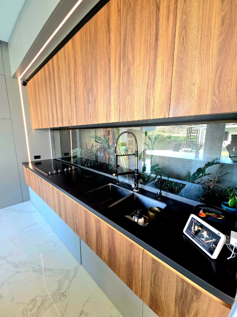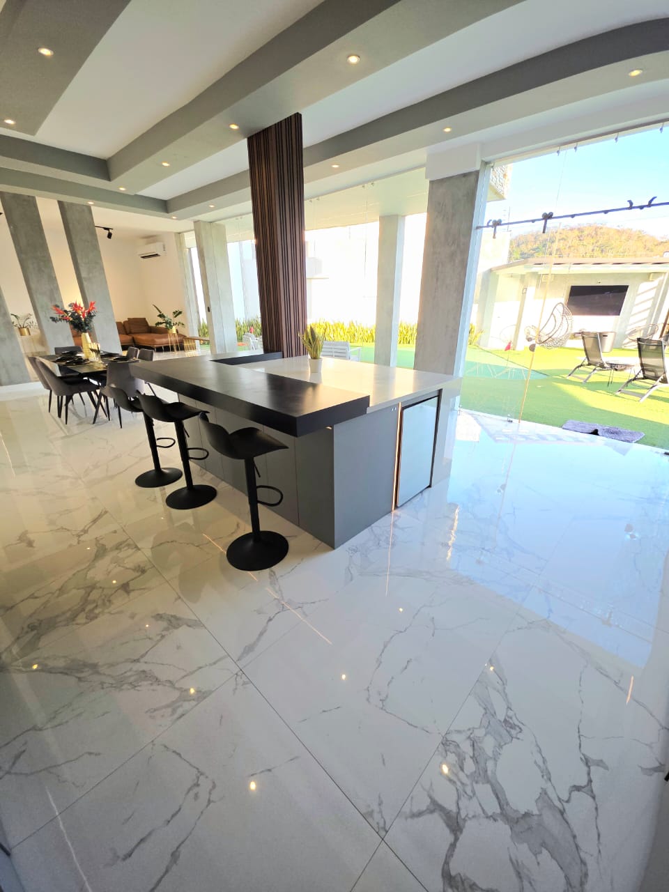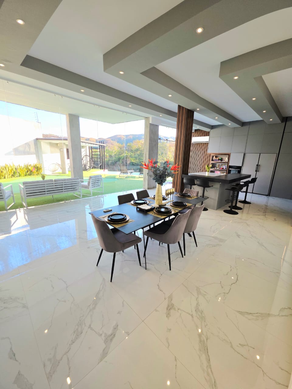 🔹️Planta baja: Salón grande en doble altura, baño de visita, Cine equipado para mas de 10 personas sentadas con sonido surround , Estar abierto a Comedor y Bella Cocina empotrada totalmente equipada, con jardin interno. Todo con vista al patio y salida directa.